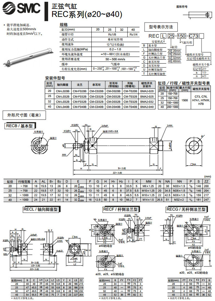 RECB20-150,RECL20-150,RECF20-150,RECG20-150,RECC20-150,RECD20-150,RECU20-150,RECT20-150,SMC正弦氣缸