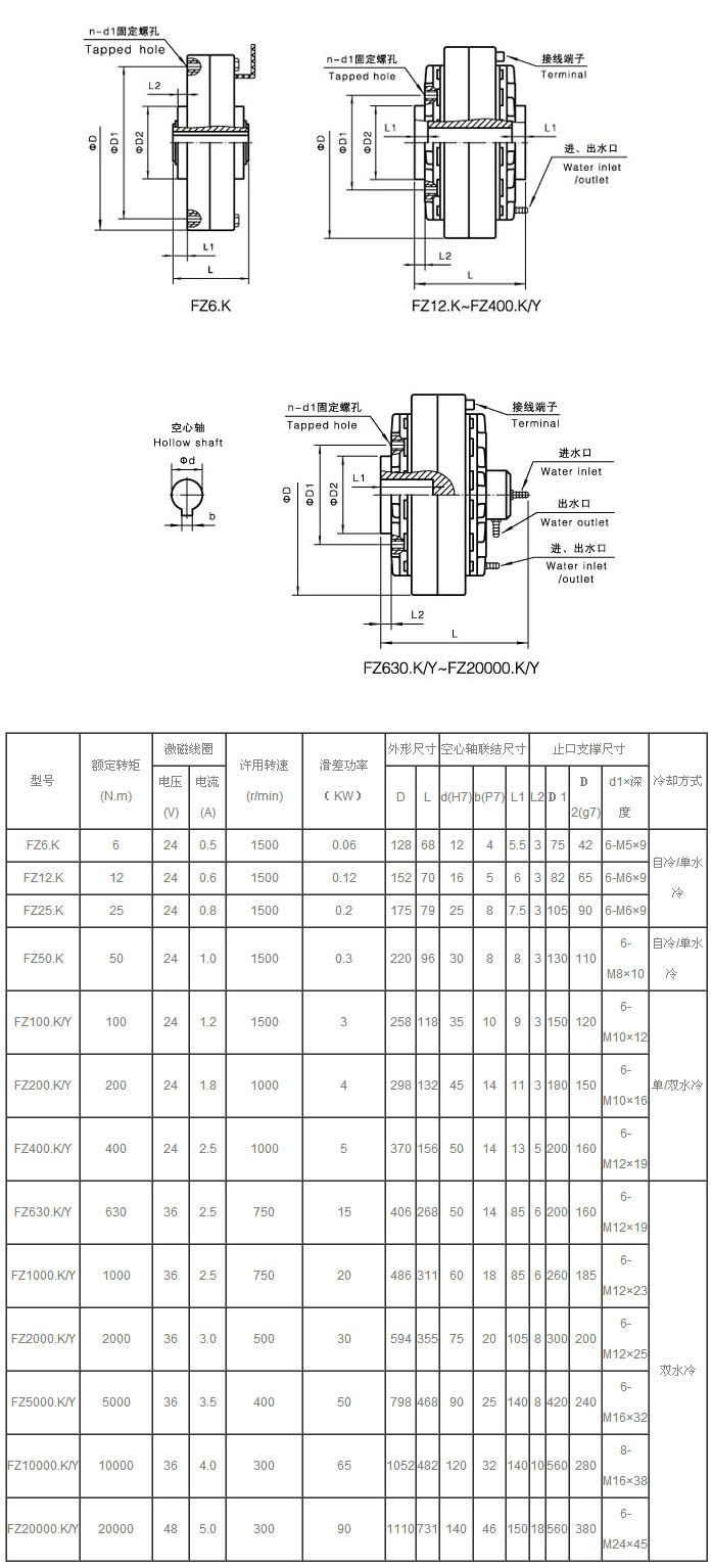 FZ6.K,FZ12.K,FZ25.K,FZ50.K,FZ100.K/Y,FZ200.K/Y,FZ400.K/Y,FZ630.K/Y,FZ1000.K/Y,磁粉制動(dòng)器