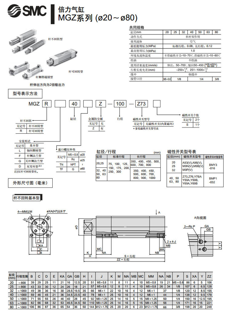 MGZR80Z-75,MGZR80Z-100,MGZR80Z-125,MGZR80Z-150,MGZR80Z-175,MGZR80Z-200,MGZR80Z-250,MGZR80Z-300,