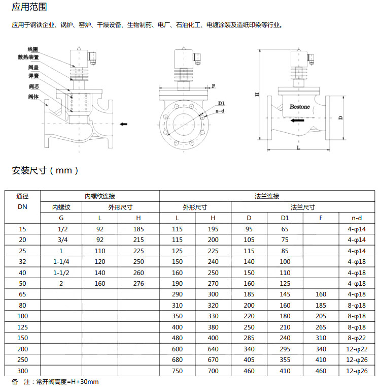 BS22H-DN15,BS22H-DN20,BS22H-DN25,BS22H-DN32,活塞分步直動式高溫電磁閥