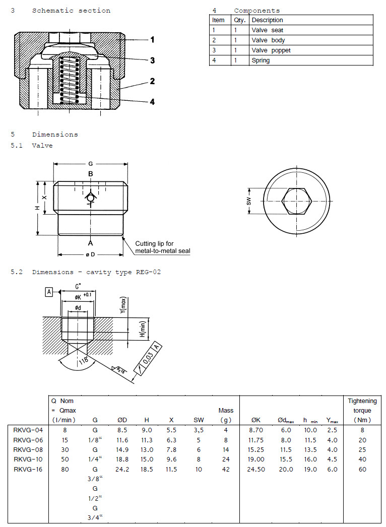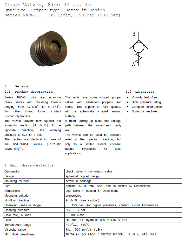 RKVG-G-04,RKVG-G-06,RKVG-G-08,RKVG-M-10,RKVG-M-16,RKVG-U-25,RKVG-U-32,Bucher止回閥