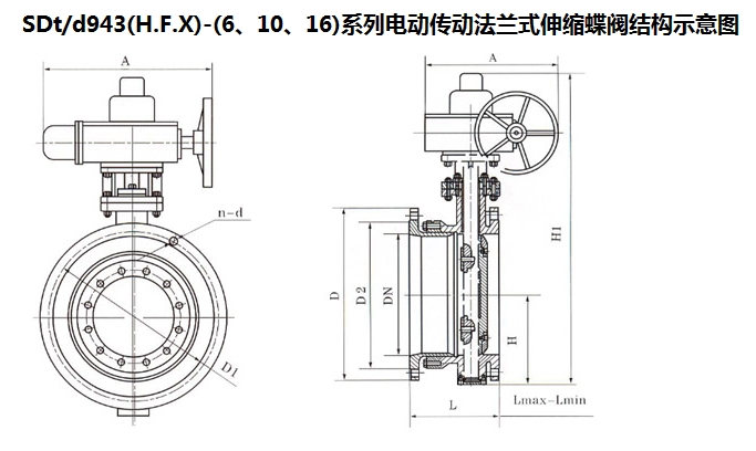 SDt943H-6,S,SDt943F-6,SDt943X-16SDd943H-6,SDd943F-10,SDd943X-6,電動法蘭式伸縮蝶閥