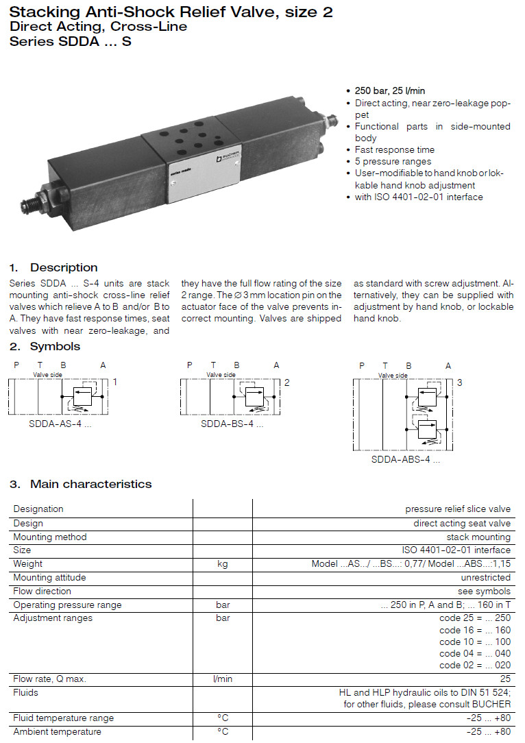 SDDA-ABS-4-25-S,SDDA-ABS-4-16-H,SDDA-BS-4-10-H,SDDA-AS-4-4-Z,Bucher抗沖擊卸壓閥