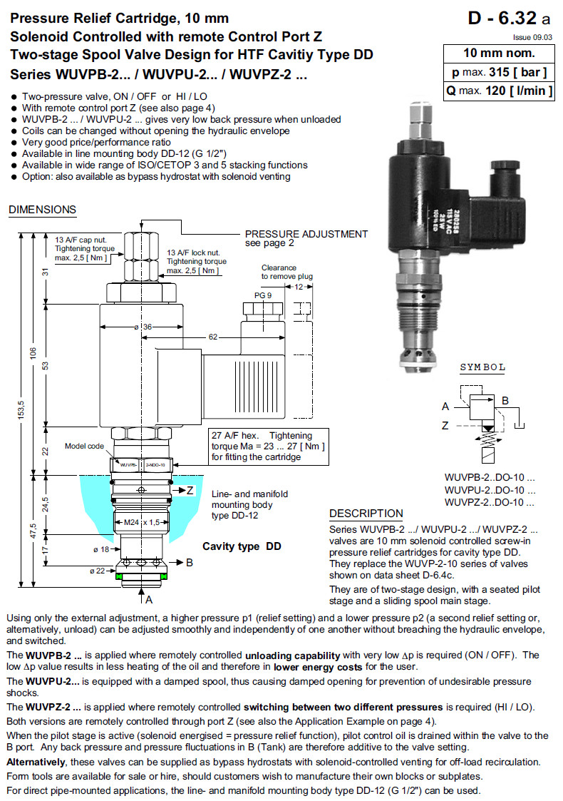 WUVPB-2MDO-10-1,WUVPB-2LDO-10-1,WUVPB-2NDO-10-1,Bucher電磁控制壓力安全閥 |