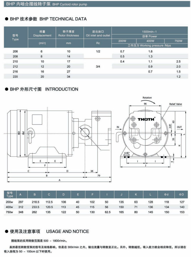BHP400-206,BHP400-208,BHP400-210,BHP400-212,BHP400-216,BHP400-220,內(nèi)嚙合擺線轉(zhuǎn)子泵