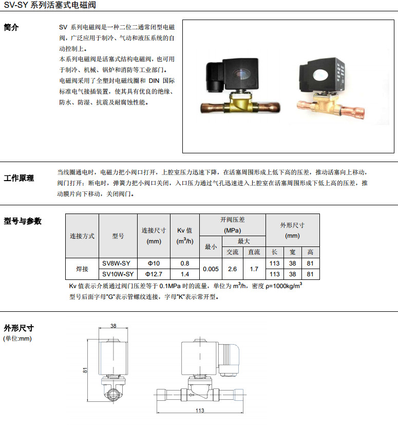 SV8W-SY,SV10W-SY,活塞式電磁閥