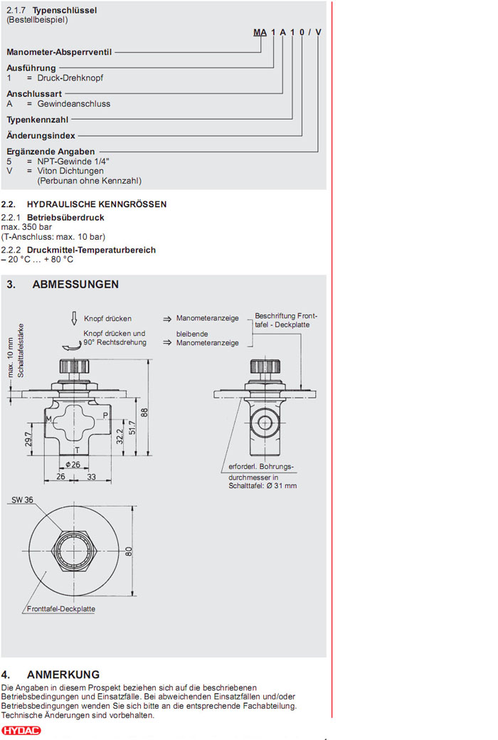 MA1A10/V,MA1A10/5,HYDAC關閉閥