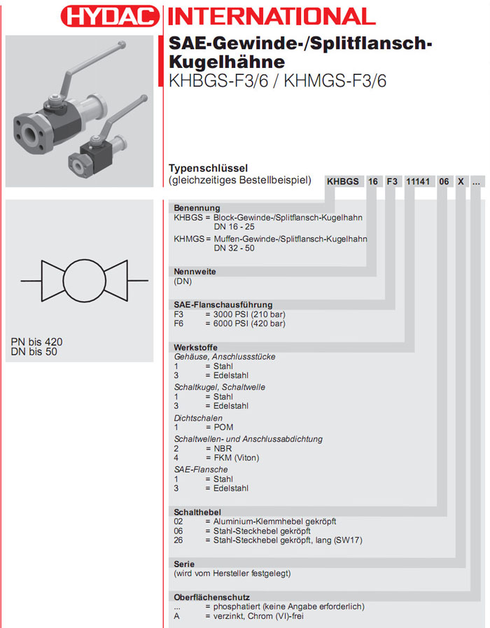 KHBGS-16-F3,KHBGS-20-F3,KHBGS-25-F3,KHBGS-32-F3,KHBGS-40-F3,KHBGS-50-F3,HYDAC 2路高壓球閥