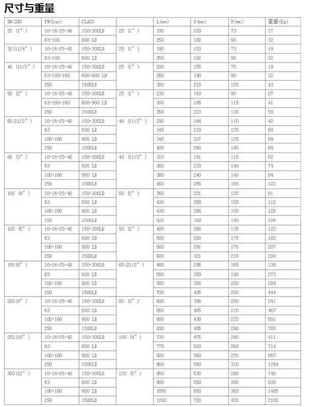 壓力等級PN16-PN420,口徑DN25-DN500