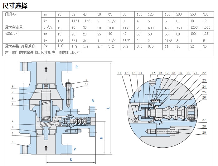 其它旁路尺寸可按要求制作;最大的旁路流量取決于最大的Kv值