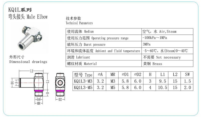 KQ1L3-M3,KQ1L3-M5,彎頭接頭