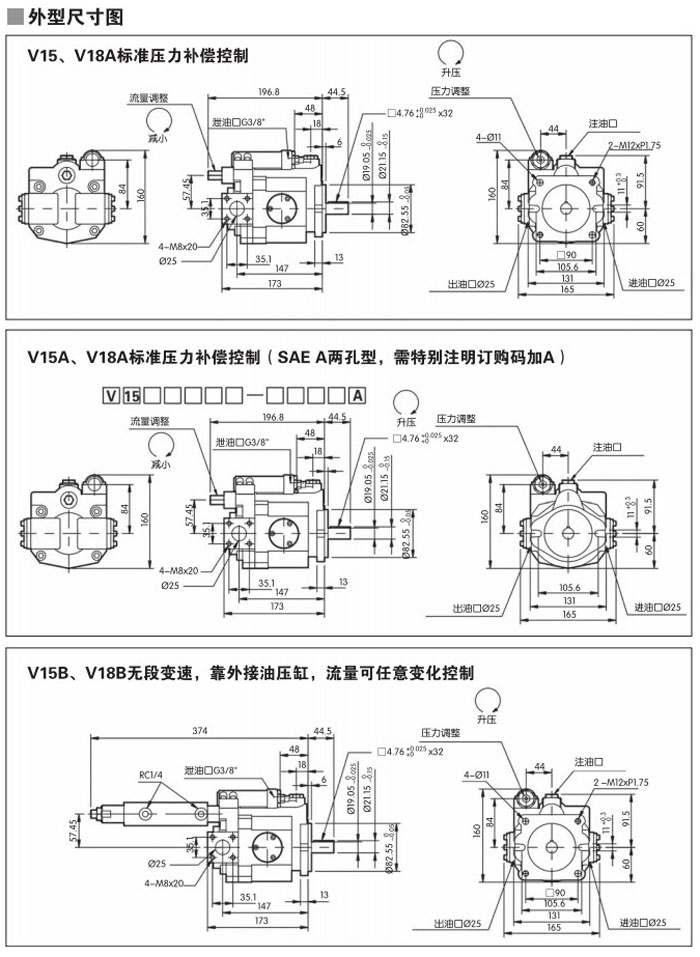 型號: V42A3RBS-B,V38A3RB2S-F,V38A3RB2-F,V38A3RB2-A,V38A3RB-F,V38A3RB2-D,變量柱塞泵