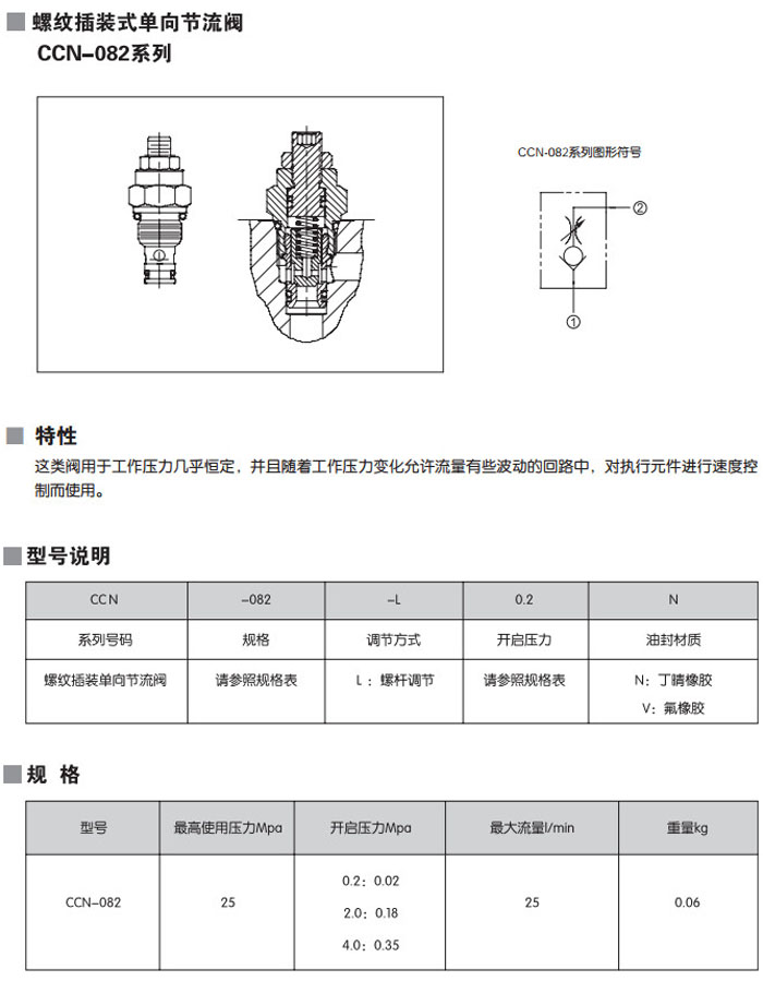 CCN-082-L0.2N,CCN-082-L0.2V,CCN-082-L2.0N,CCN-082-L2.0V,CCN-082-L4.0N,CCN-082-L4.0V,螺紋插裝式單向節(jié)流閥