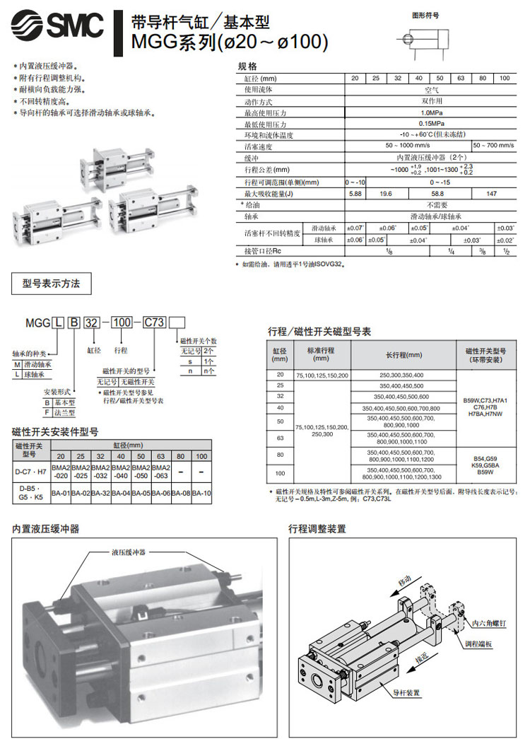 MGGMF20,MGGMF25,MGGMF32,MGGMF40,MGGMF50,MGGMF63,MGGMF80,MGGMF100,MGGMF20-75,SMC帶導(dǎo)桿氣缸