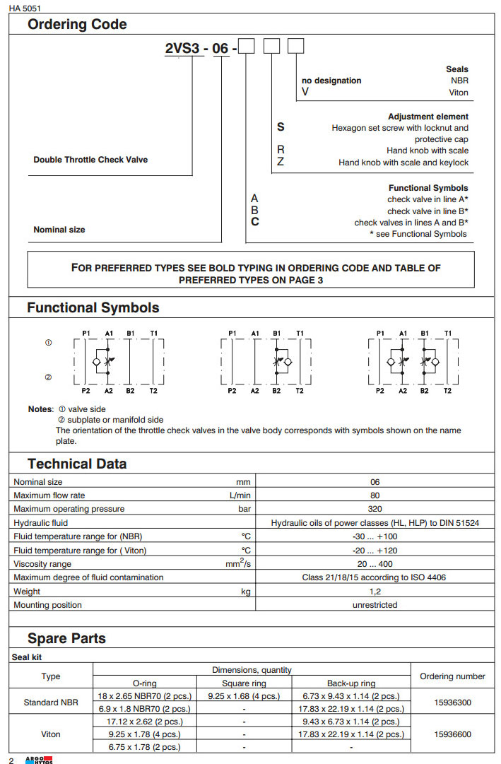 2VS3-06A,2VS3-06B,2VS3-06C,ARGO雙單向節(jié)流閥
