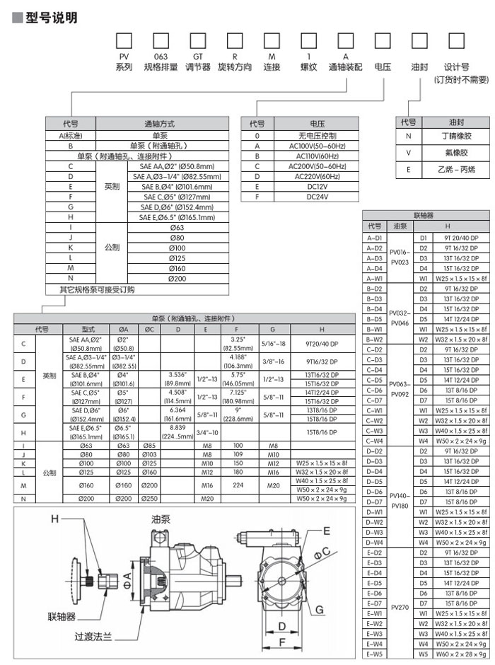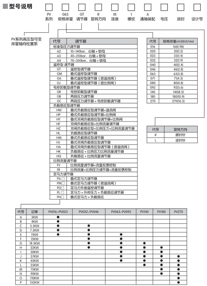 PV016,PV020,PV023,PV032,PV040,PV046,PV063,PV071,PV080,PV092,PV140,PV180,PV270,變量柱塞泵