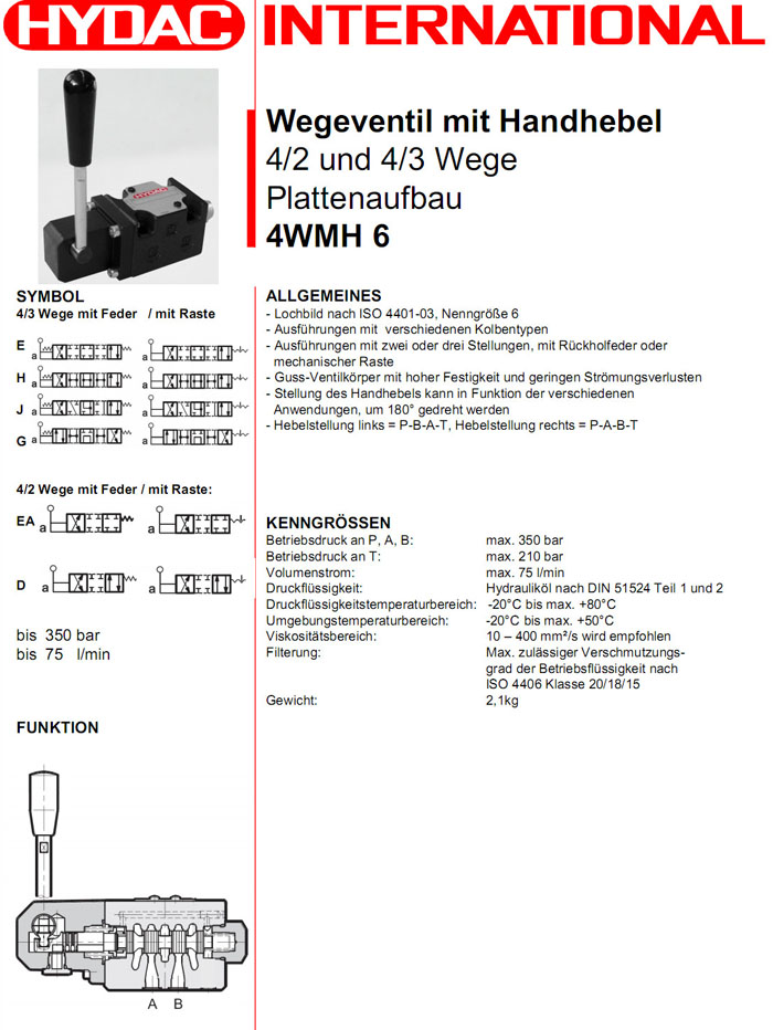4WMH6E01/V,4WMH6J01/V,4WMH6H01/V,4WMH6E-F01/V,4WMH6J-F01/V,HYDAC手動(dòng)換向閥