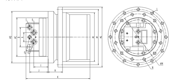 本產(chǎn)品為馬達(dá)與減速機(jī)一體的行走裝置。由集成于減速機(jī)內(nèi)部的雙排量軸向柱塞馬達(dá)、行走減速器組成。馬達(dá)內(nèi)置安全閥、防反轉(zhuǎn)閥、停車(chē)制動(dòng)裝置及高低二檔轉(zhuǎn)換裝置,它的特點(diǎn)是:傳動(dòng)比范圍大、結(jié)構(gòu)緊湊、工作效率高、可靠性強(qiáng)、體積小、運(yùn)動(dòng)平穩(wěn)、噪音低等,同時(shí)具有多級(jí)安全保護(hù)、使用壽命長(zhǎng)等優(yōu)點(diǎn)。適用于液壓履帶驅(qū)動(dòng)行走裝置。