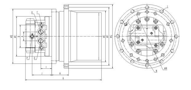 本產品為馬達與減速機一體的行走裝置。由集成于減速機內部的雙排量軸向柱塞馬達、行走減速器組成。馬達內置安全閥、防反轉閥、停車制動裝置及高低二檔轉換裝置,它的特點是:傳動比范圍大、結構緊湊、工作效率高、可靠性強、體積小、運動平穩(wěn)、噪音低等,同時具有多級安全保護、使用壽命長等優(yōu)點。適用于液壓履帶驅動行走裝置。